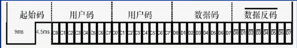 数据格式:由引导码(起始码)、用户码、数据码和数据码反码组成,编码总占领32位。
