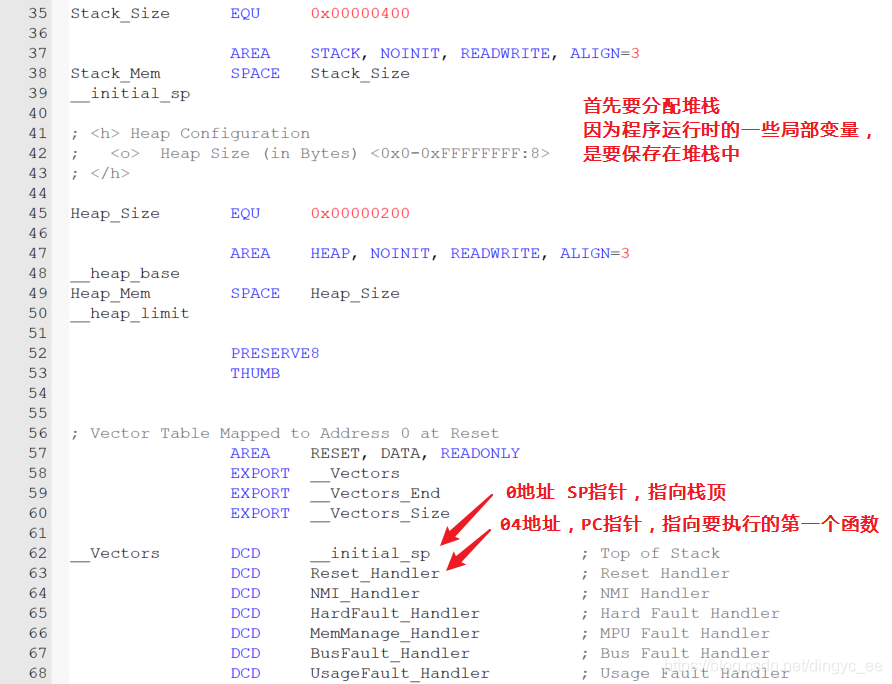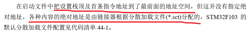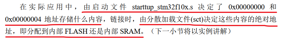 启动文件决定0地址和4地址的存储内容,sct 文件决定这些内容的绝对地址。
