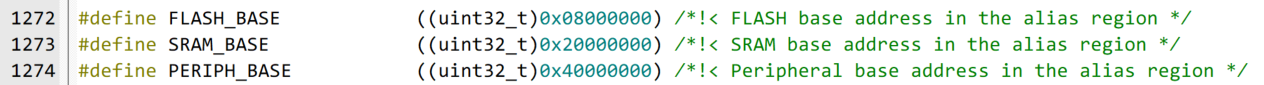 两个基地址定义如下,其实也就是SRAM和FLASH的起始地址:
