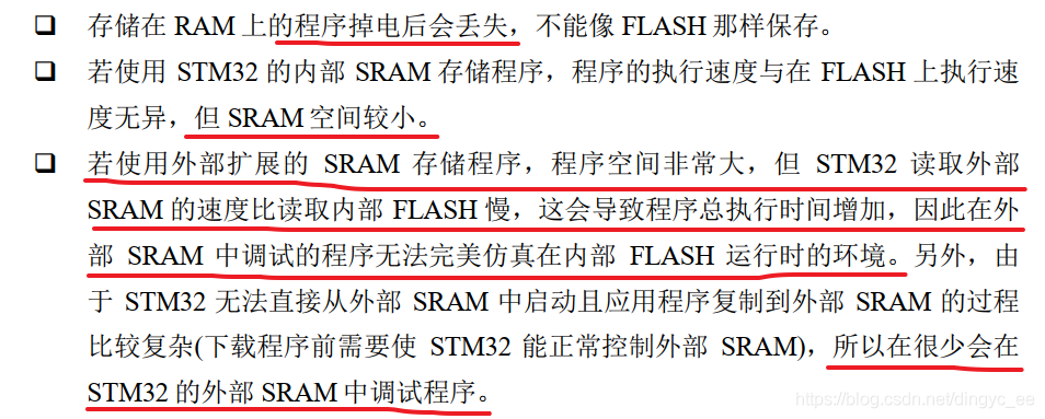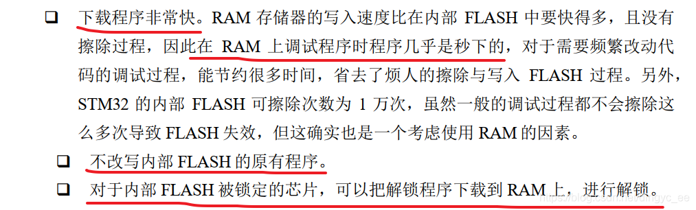 RAM 调试,由于原 FLASH 中可能有程序,因此在 BOOT0 和 BOOT1 没改变时,不能用硬件复位(硬件复位会跳转执行FLASH中的代码),只能用调试按钮,然后点击全速运行。硬件开发板上的复位和调试界面的复位均不能使用,不然就会跳转去执行FLASH程序,导致代码出错。要想复位程序,必须先退出调试,再重新进入调试。