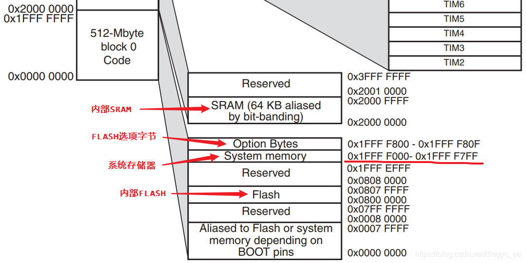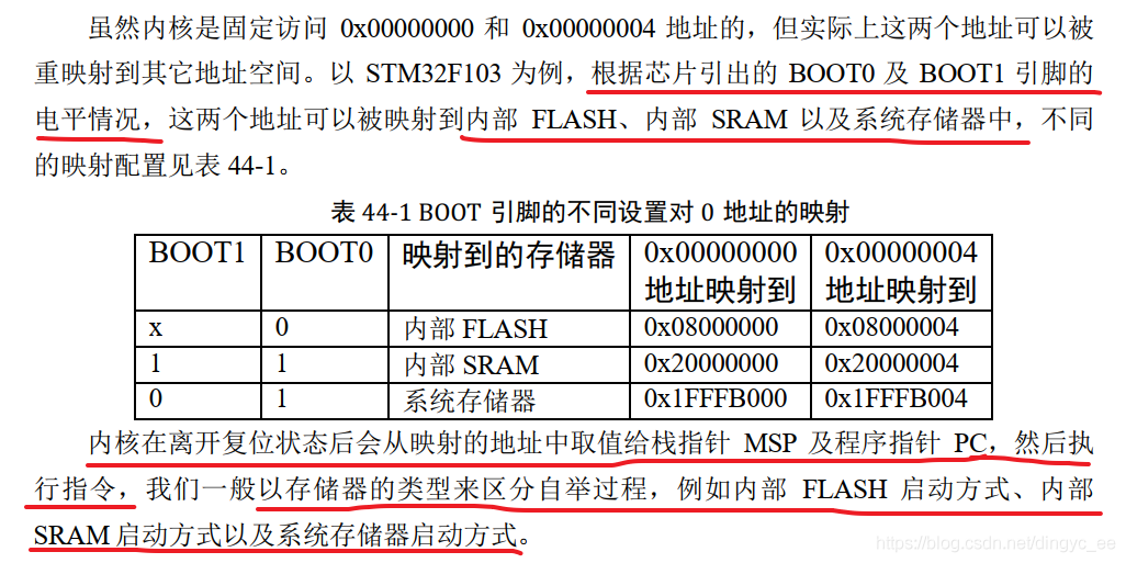 实际应用中,我们会根据BOOT0和BOOT1两个引脚,把这两个地址映射到其他地址空间;