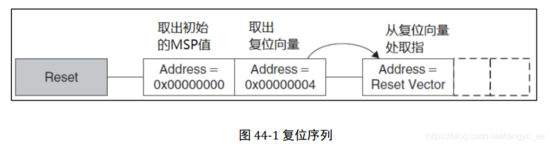 (2)从地址 0x00000004 处取出程序指针 PC 的初始值,该值指向复位后应执行的第一条指令;
