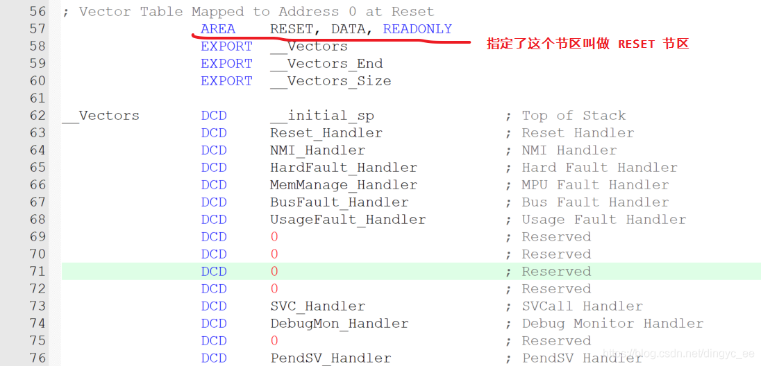 *.o(RESET, +First)命令,用于把启动文件中定义的 RESET 节区放在当前执行域的开头,即地址为 0X0800 0000。这个设计非常的巧妙,这样的话,__initial_sp 和 Reset_Handler 就分别被存储到0X0800 0000 和 0X0800 0004。