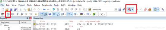 可以看到,RAM版本中的程序,完全是保存在内部SRAM的,而且和FLASH版本完全对应。