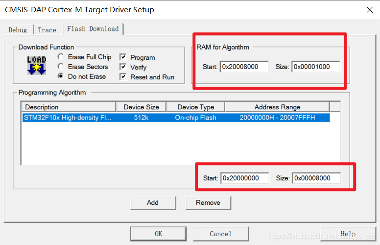 得到 SRAM 版本的代码指令后,为了把它下载到芯片的 SRAM 中,还需要修改下载器的配置,如图所示: