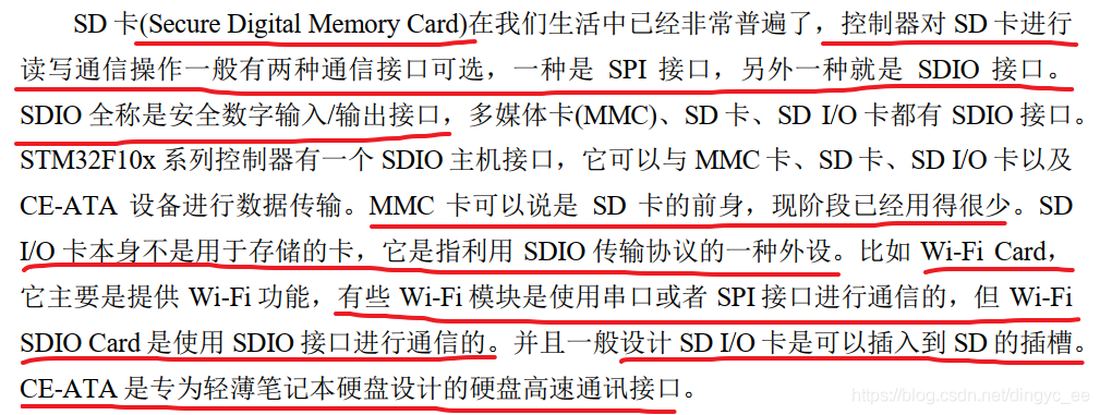 目前 SD 协议提供的 SD 卡规范版本最新是 4.01 版本,但 STM32F10x 系列控制器只支持 SD 卡规范版本 2.0,即只支持标准容量 SD 和高容量SDHC 标准卡,不支持超大容量 SDXC 标准卡,所以可以支持的最高卡容量是 32GB。