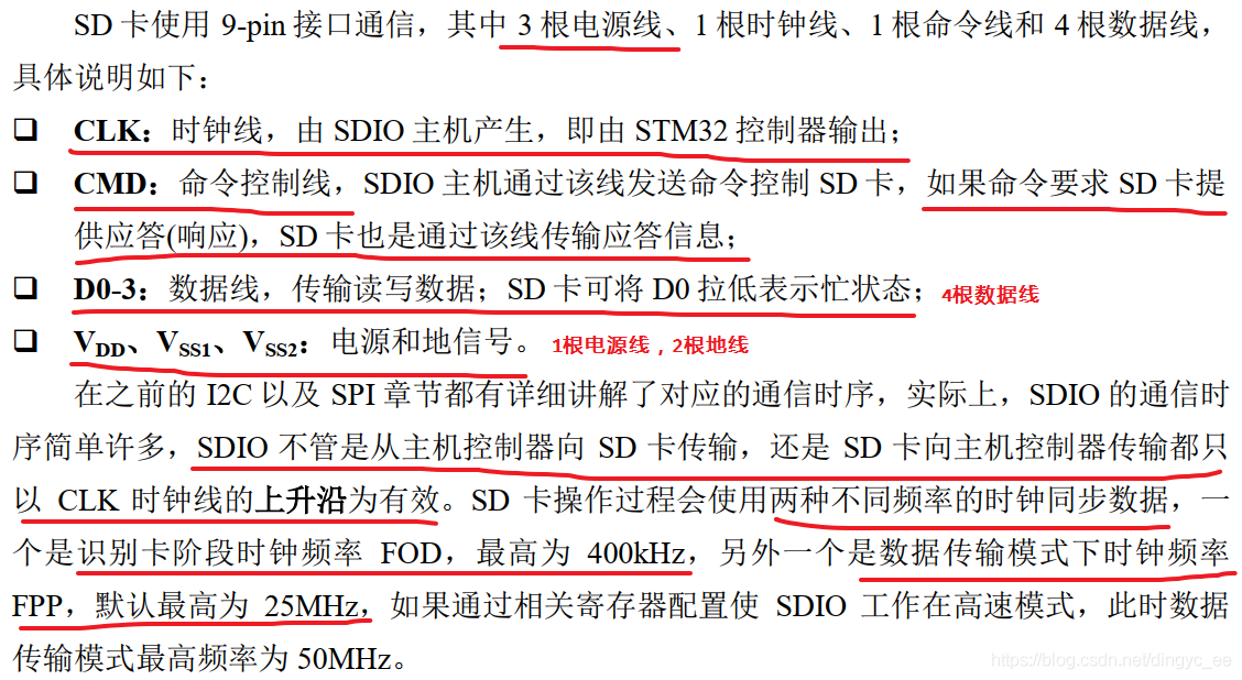 SDIO明显时钟频率更快,而且SDIO拥有4根数据线,同等频率下通信速度能提高4倍。