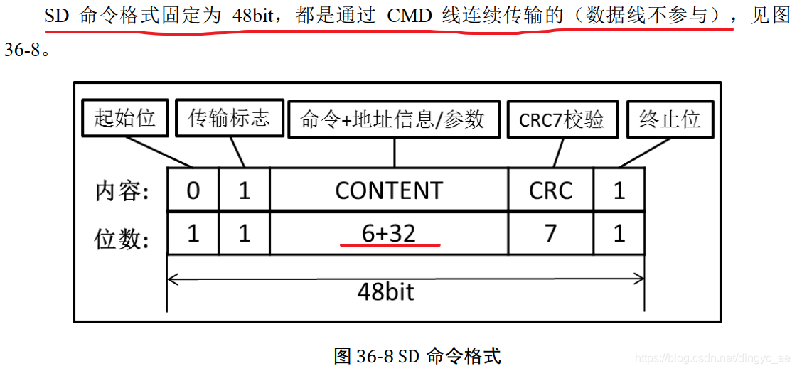 SD 总线通信是基于命令和数据传输的。通讯由一个起始位(0),由一个停止位(1)终止。 SD 通信一般是主机发送一个命令,从设备在接收到命令后作出响应,如有需要会有数据传输参与。