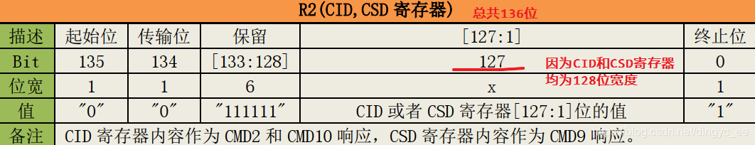 可以看到,发送命令CMD2,返回R2类型,实际上就是返回CID或者CSD寄存器的值。