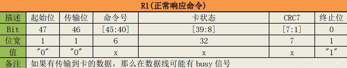 R1类型会返回卡状态寄存器的全部位。