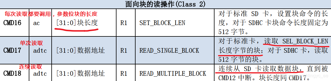 SDSC:地址以字节位单位,如 0 ~ 511地址位第1数据块,512 ~ 1023地址为第2数据块;