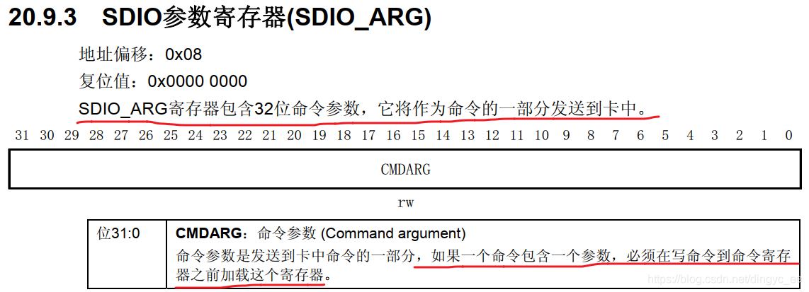 SDIO_CmdInitStructure.SDIO_Argument = 0x0;