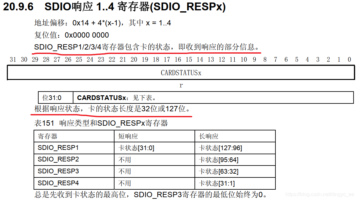 SDIO响应1...4寄存器(根据短响应or长响应不同来区分)