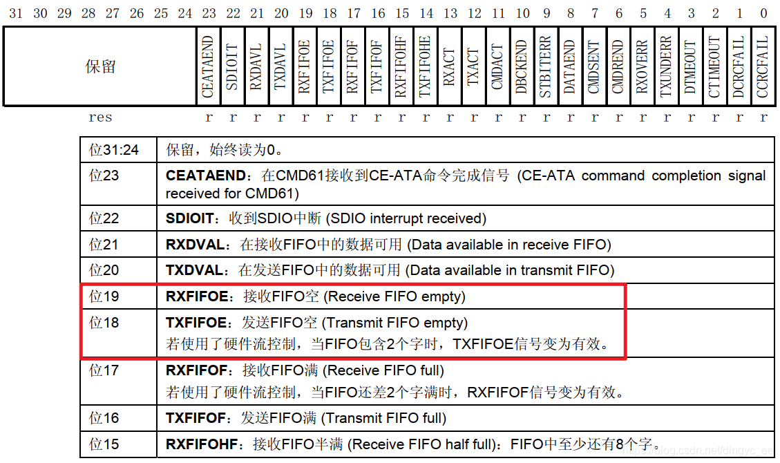 下面是 stm32 中文参考手册中,相关的寄存器描述: