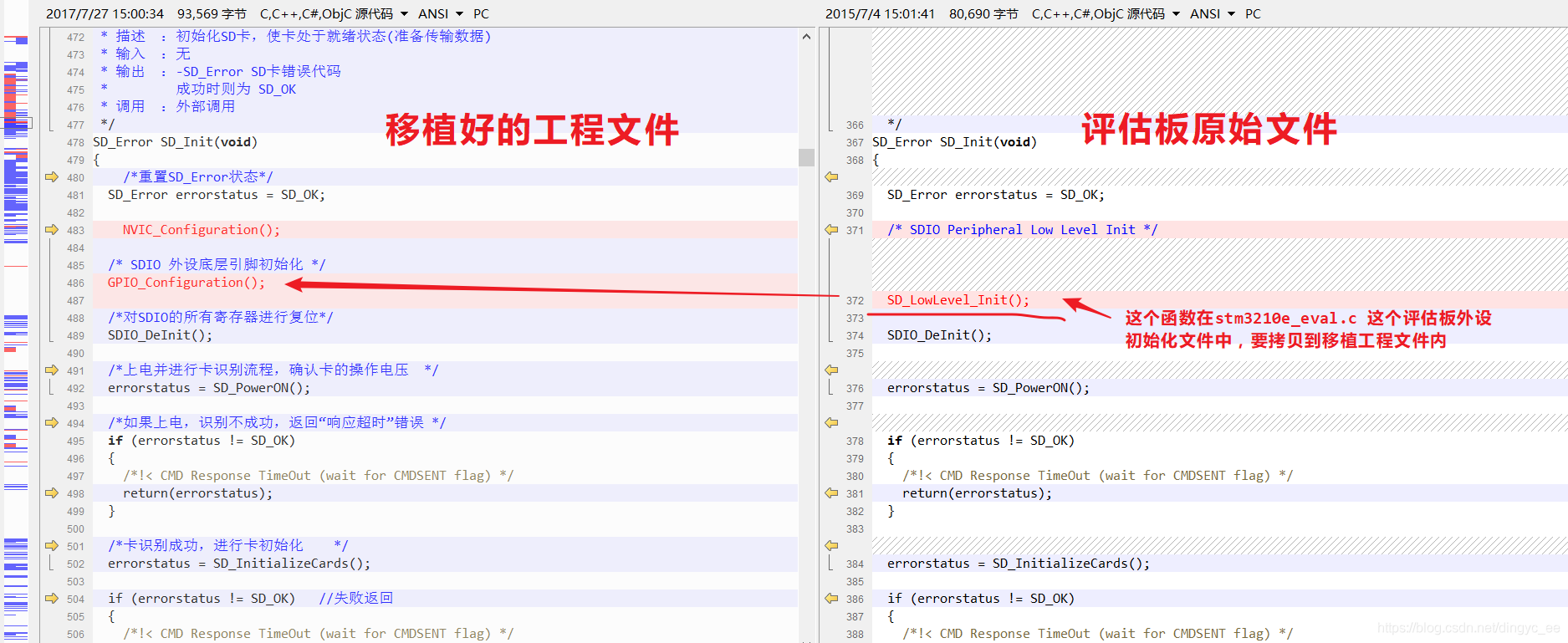 如下图所示(移植好的工程和原始工程对比):