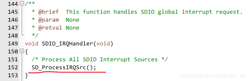 注意,SDIO使用了中断,因此我们也需要将中断服务函数移植进来。
