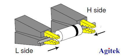 3) 针对有方向性的器件,如电解电容,需将测试夹H side接在被测器件正端,L side接至器件负端,测试夹尽量靠近被测器件本体。如果被测器件有外壳,需将外壳接地再执行测量,可以有效降低噪声影响。