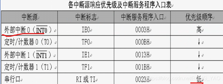 为了实现上述后两条原则,中断系统内部设有两个用户不能寻址的优先级状态触发器,其中一个置1,表示正在响应高优先级的中断,他将阻断后来所有的中断请求:另外一个置1,表示正在响应低优先级中断,他将阻断后来所有的低优先级中断请求。