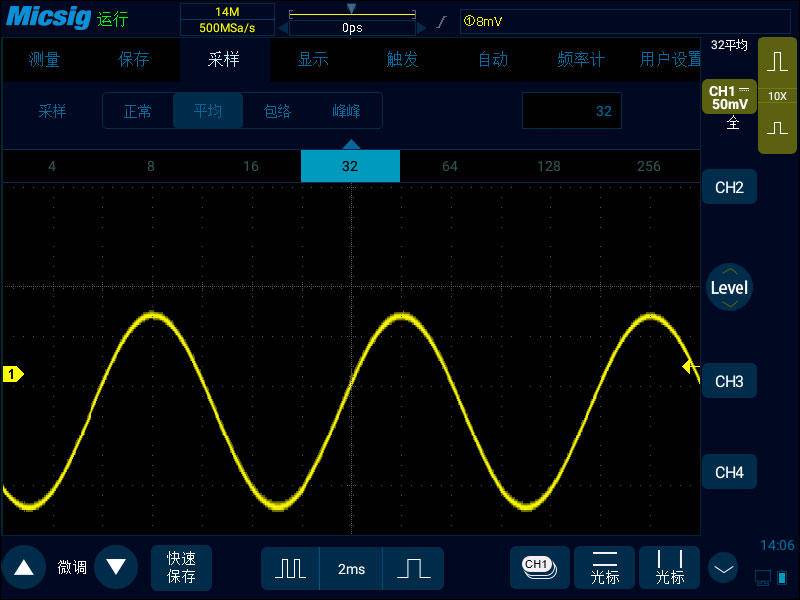 大多数示波器会提供几种采样模式供用户选择,常见的有正常采样、平均采样、峰值采样和包络采样。