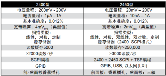 二、吉时利源表2450主要指标:
