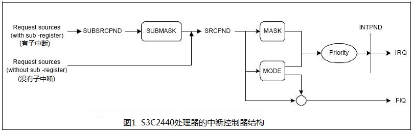 S3C2440处理器的中断控制器结构如下图1所示: