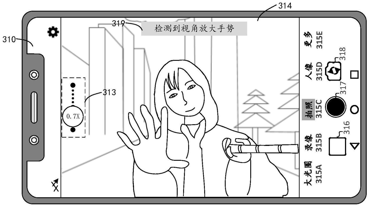 IT之家了解到,该申请实施例提供了一种拍照方法,电子设备可通过前置摄像头识别用户的手势,识别到特定手势时,在预览框中先后显示一系列图像,这一系列图像所呈现的预览视角的大小是渐变的。