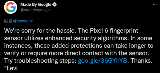 谷歌在回应下方提供了一个指向支持页面的链接,该页面除了建议确保手指干净并且使用的是已在手机上注册的手指之外,实际上并没有提供太多帮助。