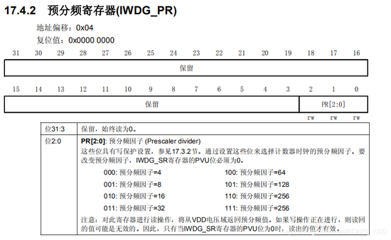 IWDG->PR = IWDG_Prescaler; 预分频寄存器