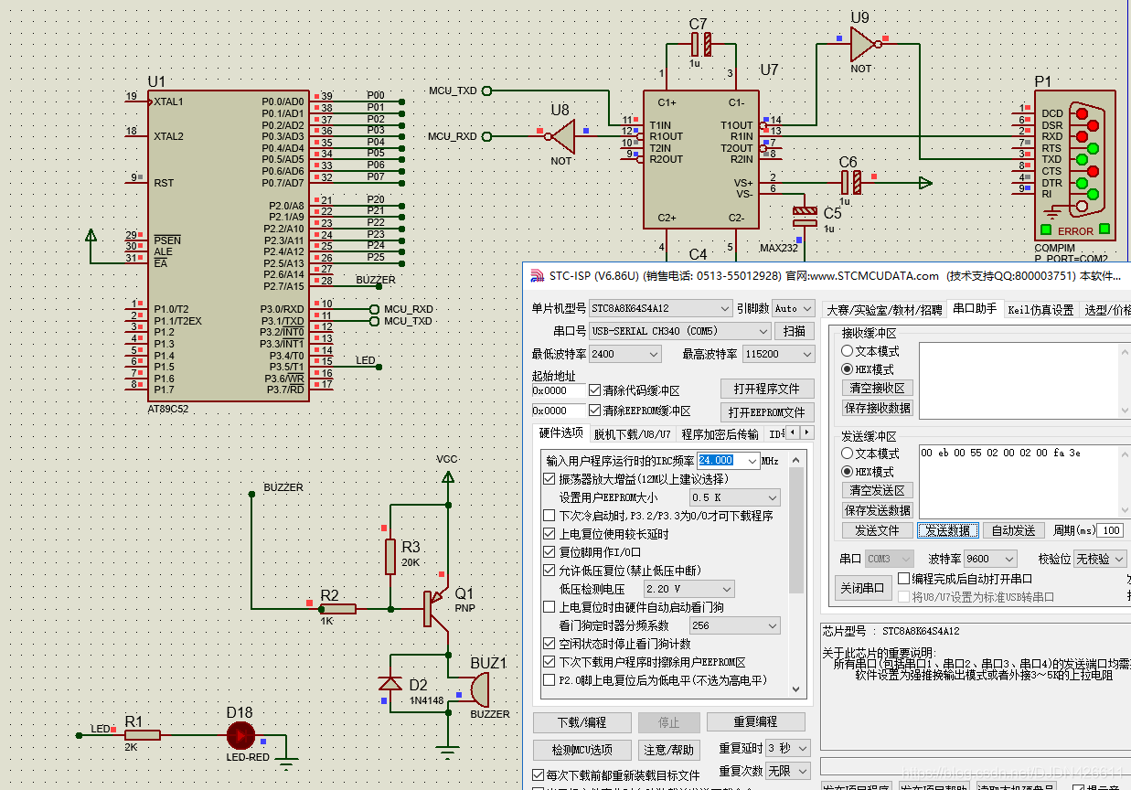 ---- 在本程序中,当数据类型是01时,有效数据代表蜂鸣器鸣叫的时间长度。当数据类型是02时,有效数据代表Led灯点亮的时间长度。