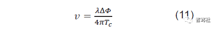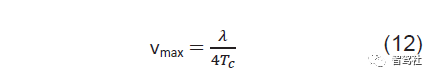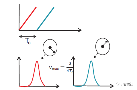 方程式 12 给出由间隔 Tc 的两个线性调频脉冲可以测得的最大相对速度(vmax)。更高的 vmax 需要两个线性调频脉冲之间更短的传输时间。
