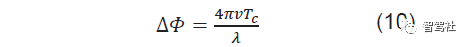 相位差通过方程式 6 推导出方程式 10:
