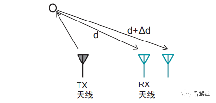 角度估算基于下面的观测,物体距离的很小变化即可导致距离 FFT或多普勒 FFT峰值的相位变化。该结果被用于执行角度估算,该估算使用至少两个RX天线,如图 11所示。物体与两个天线的距离差会导致 FFT 峰值的相位变化。相位变化使您能够估算AoA。