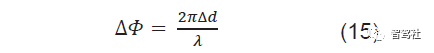 在此配置中,相位变化在数学上可以推导出方程式 15:
