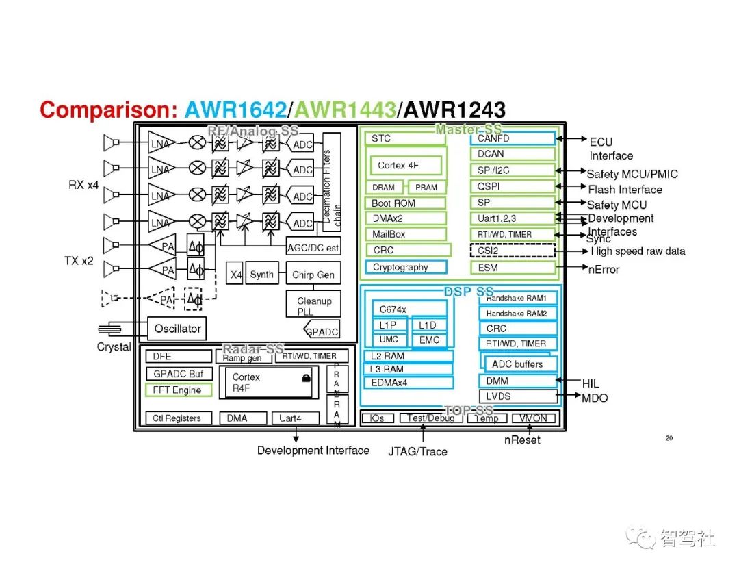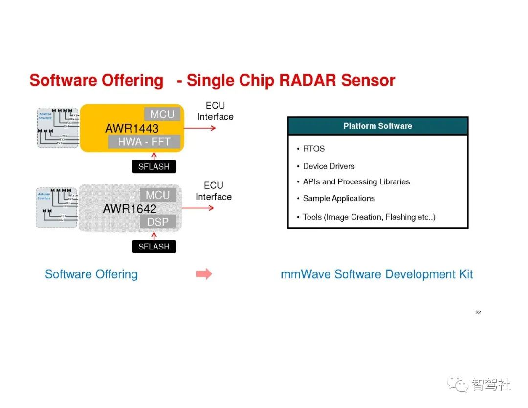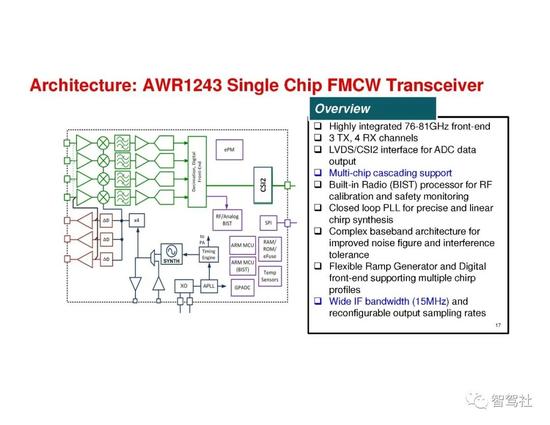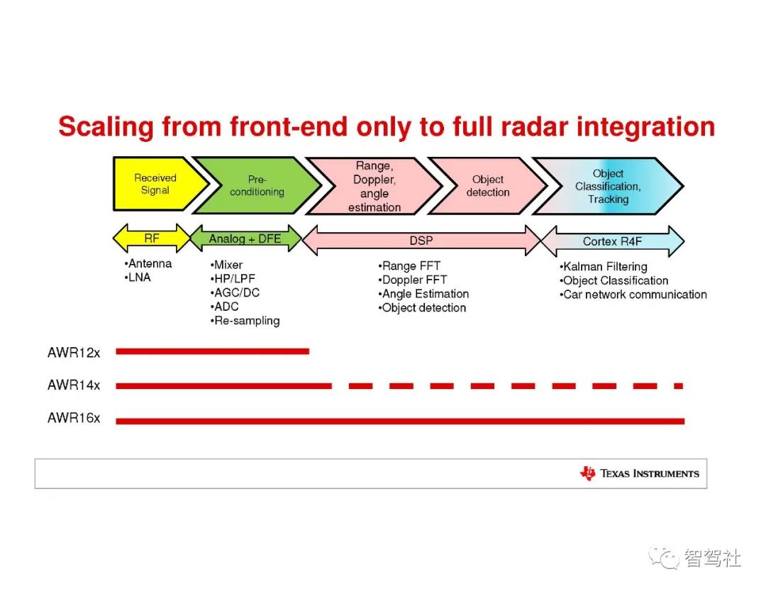 完整的毫米波雷达系统包括发送 (TX) 和接收 (RX) 射频 (RF) 组件,以及时钟等模拟组件,还有模数转换器 (ADC)、微控制器 (MCU) 和数字信号处理器 (DSP) 等数字组件。过去,这些系统都是通过分立式组件实现的,这增加了功耗和总体系统成本。关于距离和距离分辨率的内容请阅读《毫米波雷达基本原理-距离和距离分辨率测量原理》