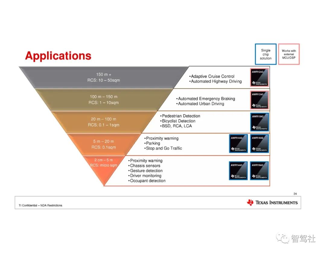 TI 将 DSP、MCU 以及 TX RF、RX RF、模拟和数字组件集成到RFCMOS 单芯片中,将创新带入了FMCW 传感领域。