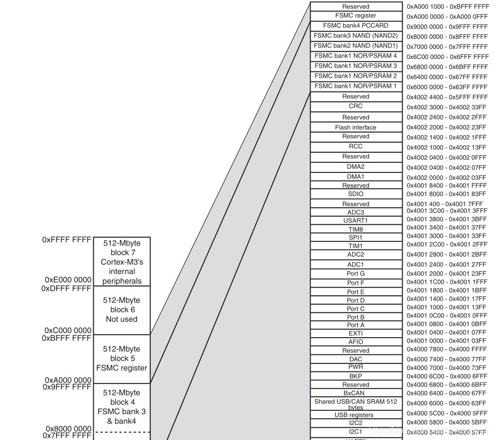 Block0、Block1、Block2包含了STM32芯片内部Flash、RAM和片上外设。