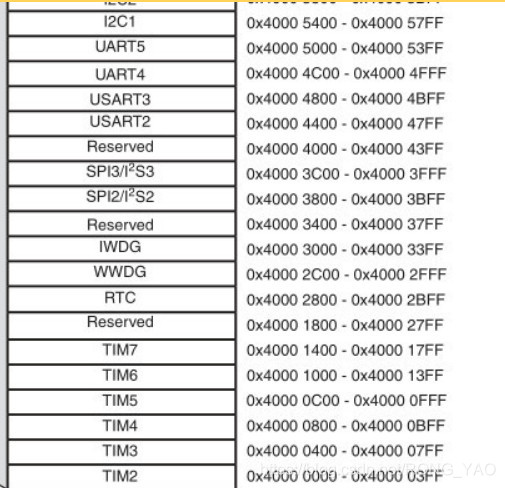 从上图可以看到 APB1 总线基地址是 0x4000 0000,相对外设基地址的偏移量是 0,所以此总线也是外设 Block2 的基地址。