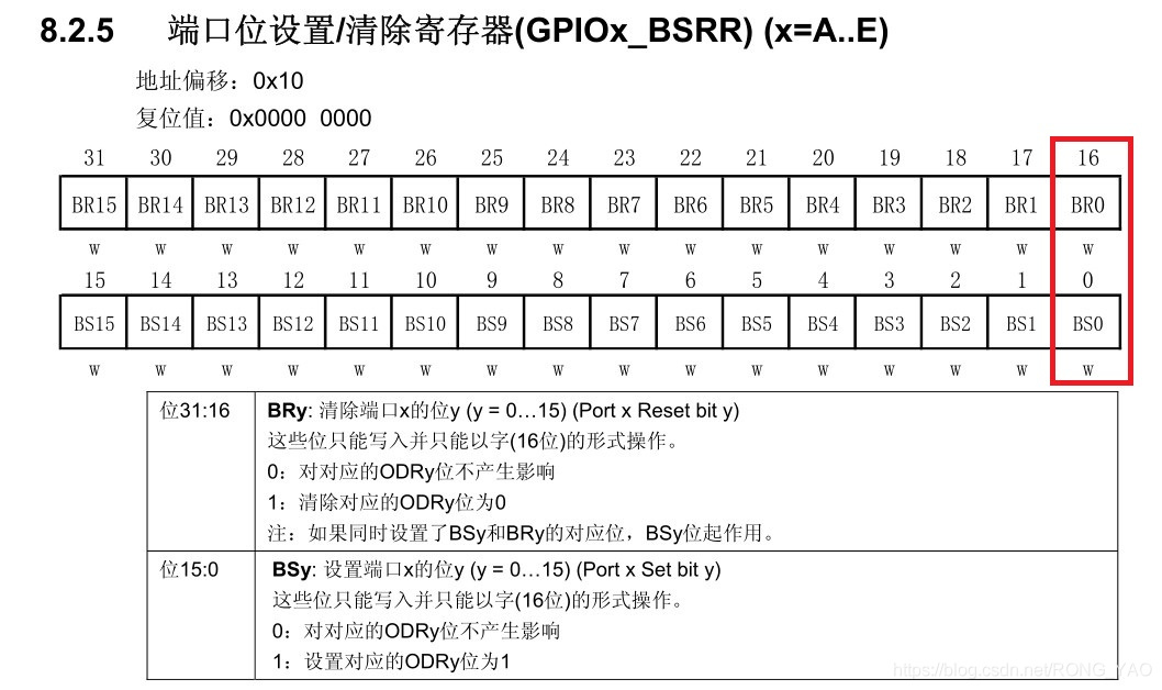 uint32_t BSRR; /*GPIO 位设置/清除寄存器 地址偏移: 0x10 */
