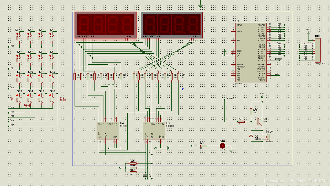 ---- @Description: 数字1键对应S1键,数字2键对应S2键,数字3键对应S3键…. 数字9键对应S9键, 数字0键对应S10键。加号键对应S13,等于号键对应S14,清除复位按键对应S16。其它按键不用。