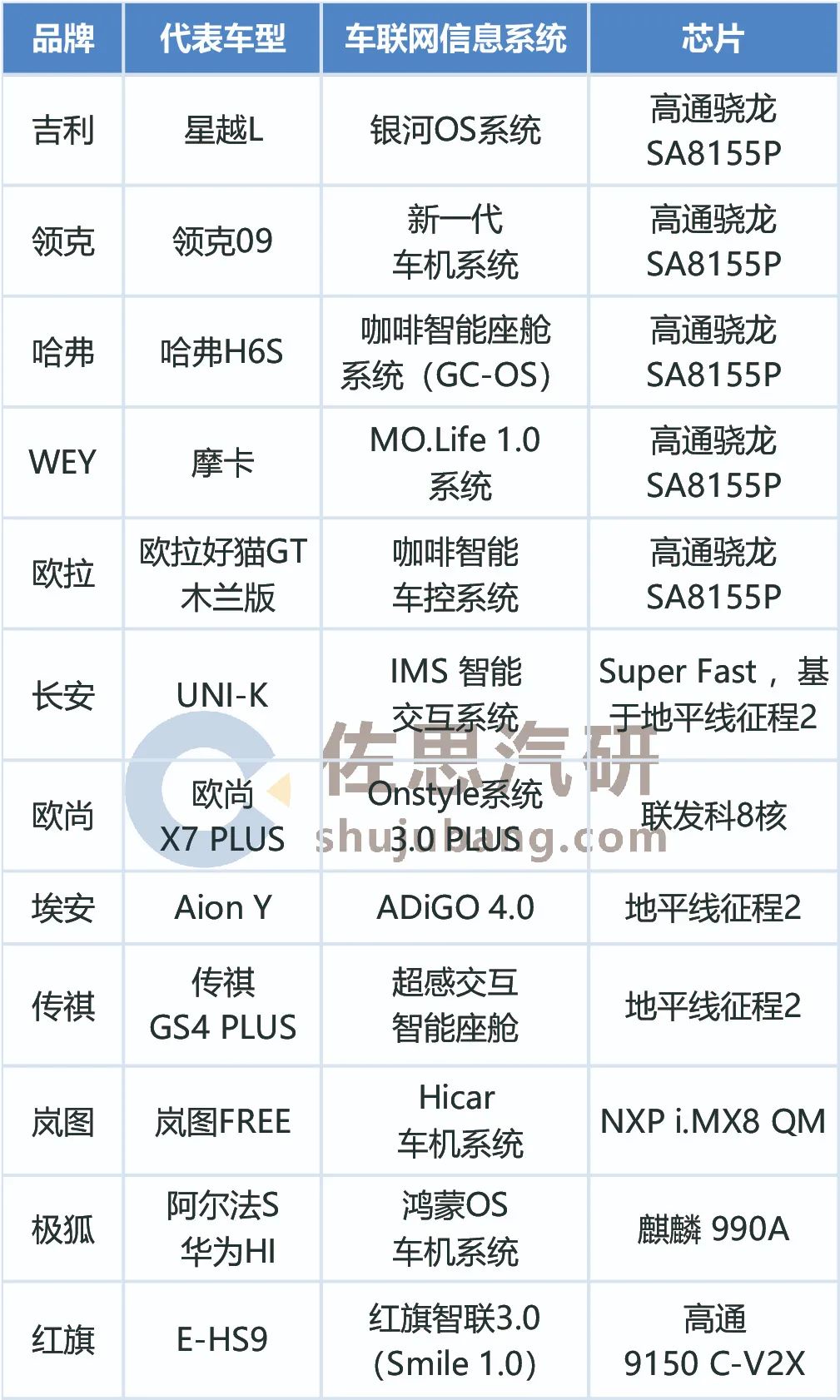 2021年自主品牌最新车联网信息系统及车机芯片