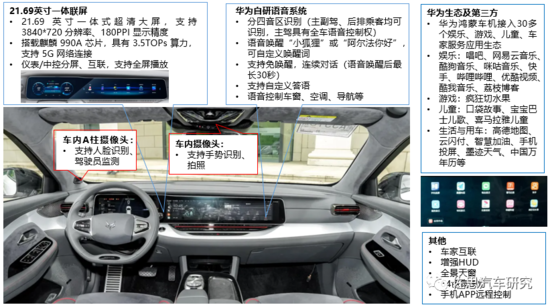 华为:利用5G技术,华为HiCar系统可实现人、车、家全场景智慧互联,包括手机与车机连接、一键导航、视频通话、一键远程控制家居、疲劳驾驶监测、手势交互、手机应用生态共享,并接入30+车载生态等。迄今,HiCar系统已接入东风风神、东风风光、岚图、领克、广汽传祺、比亚迪、上汽荣威等数十个品牌,计划到年底预装量超过500台。