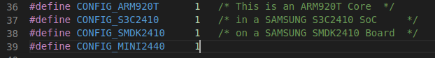 2.4、添加mini2440配置,vim include/configs/mini2440.h,添加39行代码: