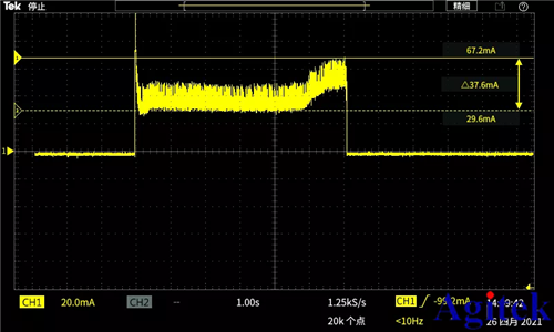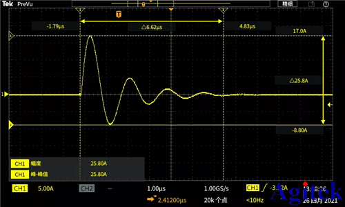 通过测试发现,入门级泰克示波器TBS1000C系列和TCP2020电流探头也能看到比较好的效果: