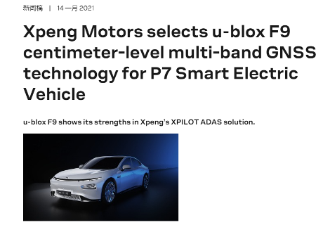 ZED-F9R模块是一款通过汽车AEC-Q100标准认证的车规级GNSS芯片,同时也可以在工业领域中应用。据官网信息显示,ZED-F9R模块已被国产品牌小鹏的P7车型采用,应用于小鹏的第三代XPILOT高级驾驶员辅助系统(ADAS),用于导航引导驾驶、自动停车和自动驾驶等方面,提供车辆精准定位,实现行车道的自动更改和最佳路线的快速切换等。