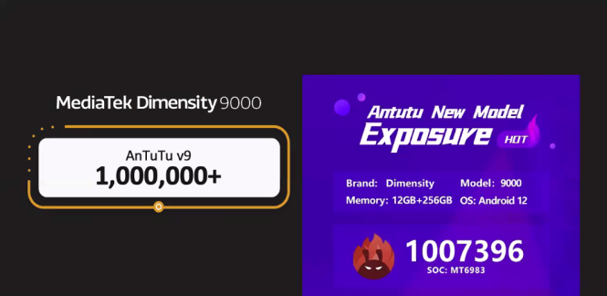 天玑9000整体性能出众,在安兔兔上的跑分达到了1007396分。