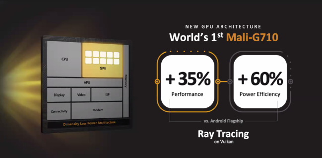 GPU部分采用了Arm Mali-G710 十核 GPU,支持移动端光线追踪图形渲染技术,支持180Hz FHD+显示。