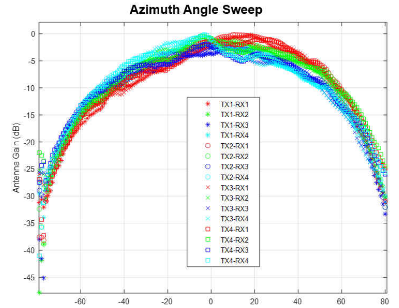 天线频段覆盖76GHz至81GHz,增益13dBi, 3dB波束宽度水平±30°,俯仰±3°。6dB波束宽度水平±45°,俯仰±5°。