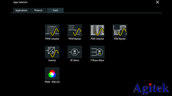 选择 PWM(单极性和双极性)、PDM(单极性和双极性)、逆变器、直流电机、三相电机和 PWM – RGB LED,