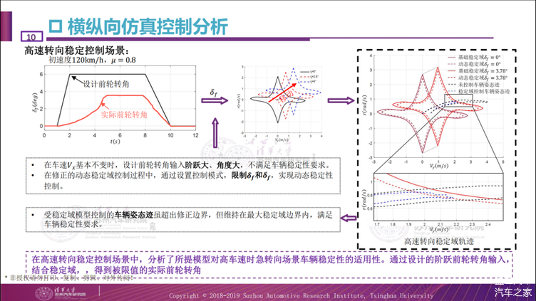 如图5,是实际的应用场景和仿真,对于转向而言,它的两个关系,一个是转向角度和转向角度的变化率,有一个应用场景就是高速的时候大角度的指令输入,在阶跃情况下面,研究院要进行稳定域的移动来达到相关的效果。