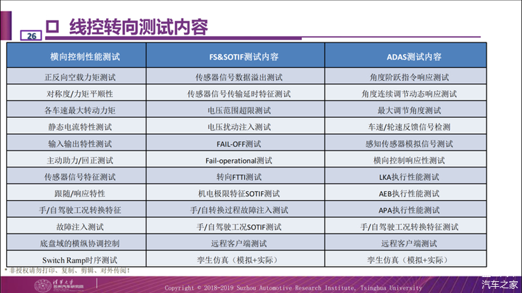 如图16,是线控转向测试内容,线控转向涉及到横向控制性能,涉及到功能安全和预期功能安全测试内容,还涉及到ADAS测试内容。